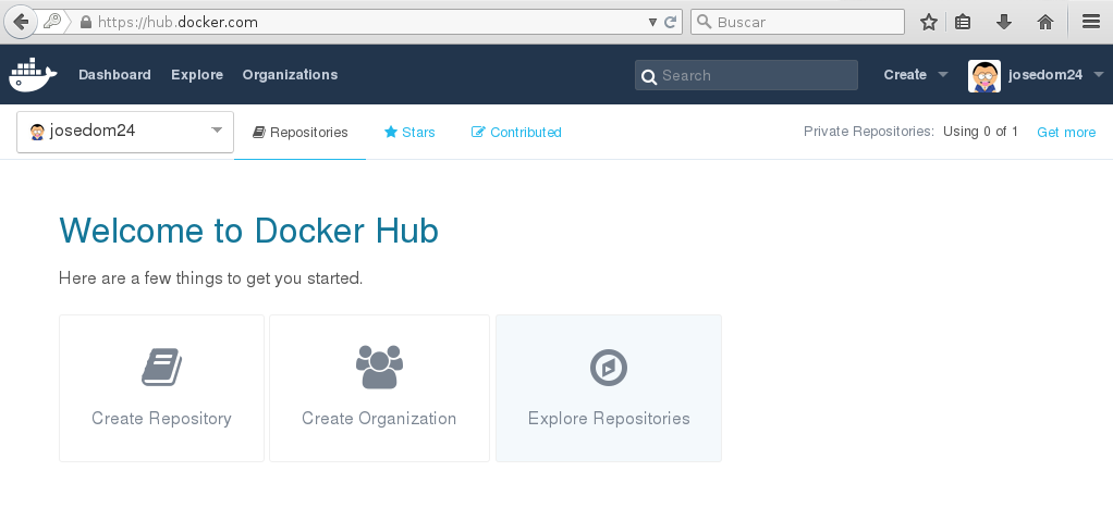 Otra opción que tenemos es guardar nuestra imagen en el registro docker hub, de esta forma sería muy sencillo descargarlo en otro equipo. Es necesario tener una cuenta en docker hub, nosotros ya tenemos una cuenta con el usuario josedom24.