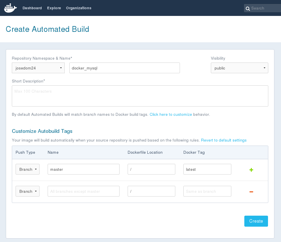 A continuación desde docker hub tenemos que crear un “Automated Build”: