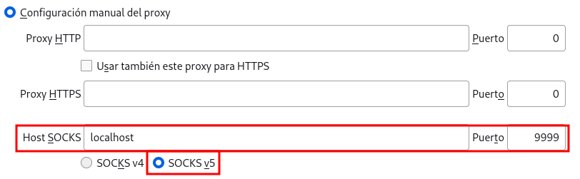 1. Dejamos la terminal abierta, y configuramos el proxy en el navegador web, por ejemplo en Firefox: